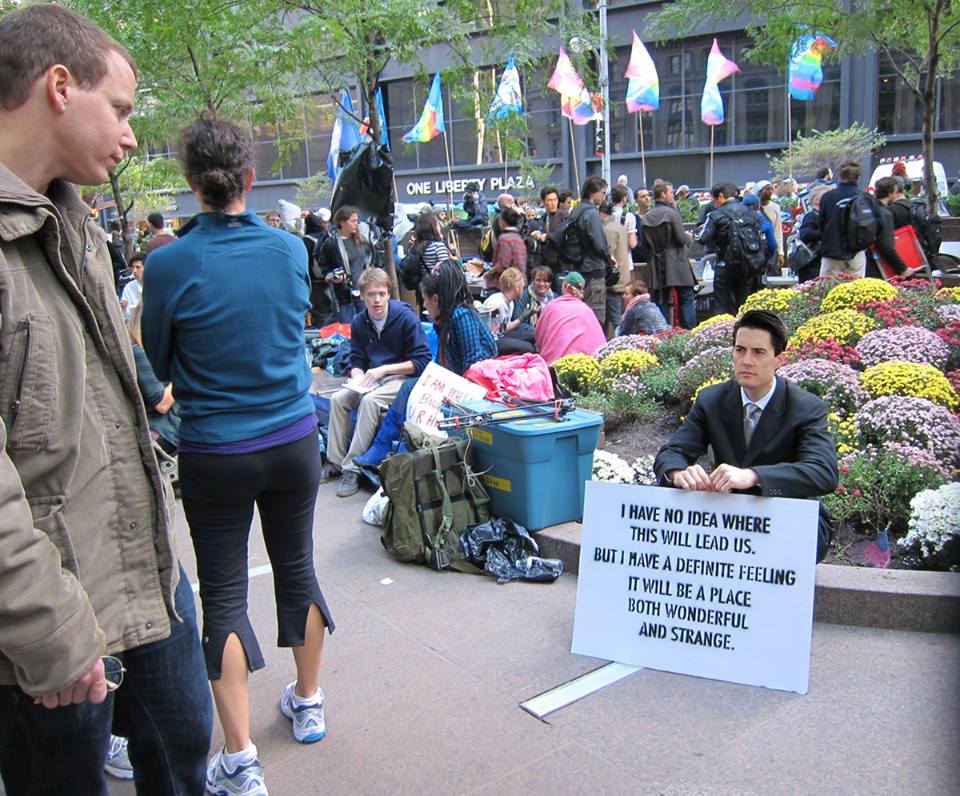 In October 2010, Michelle Levy began stirring up a new kind of energy around the Twin Peaks character, Agent Dale Cooper, when she embarked on a campaign to find him. Her performance took place throughout New York City, and through imagery disseminated of young Cooper making local appearances in present day. Michelle used these photos as “evidence” that Cooper was trying to tell us something.